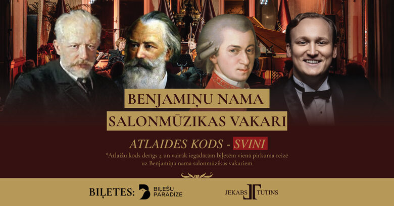 Izbaudi izsmalcinātu salonmūzikas vakaru Benjamiņu nama greznajās zālēs vietā, kur vēsture, elegance un dzīva mūzika satiekas vienā elpā. Šis vakars veidots kā saruna starp klasiskās mūzikas zelta repertuāru un mūsdienu autoru skatījumu, kurā līdzās pasaules klasikas meistardarbiem īpaša vieta atvēlēta arī klasiskās mūzikas komponista Jēkaba Tutiņa daiļradei.
